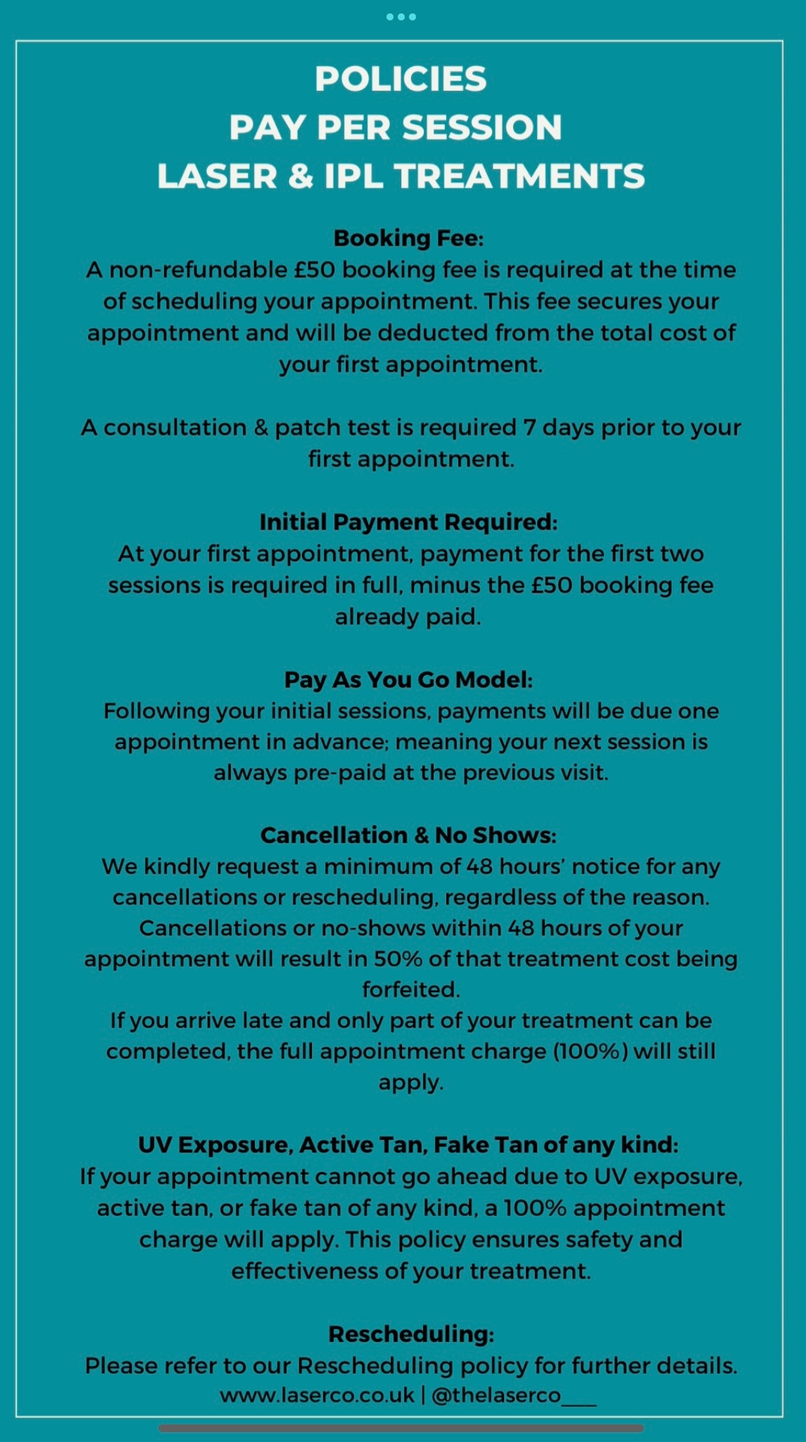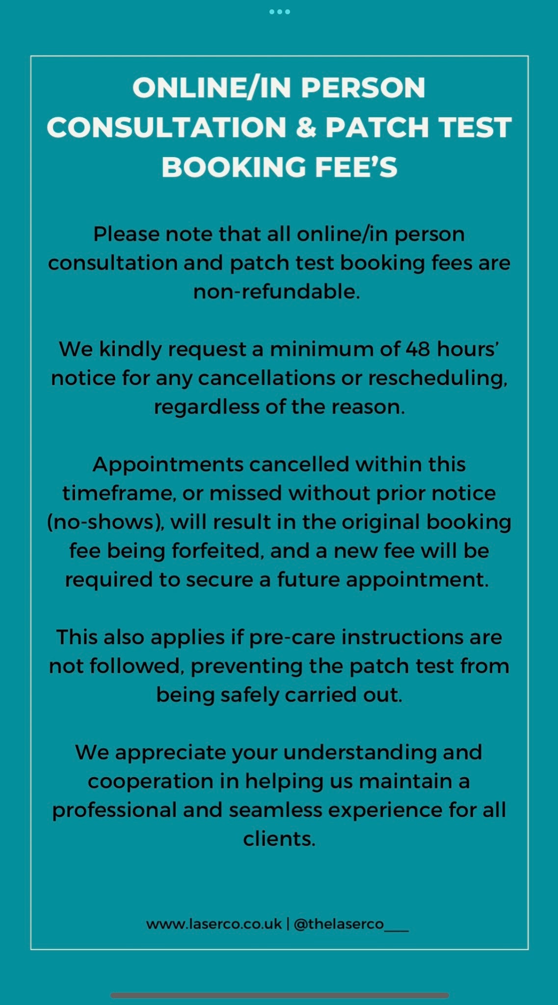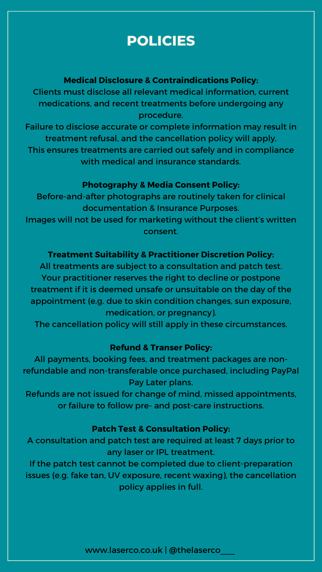 - All treatments are subject to a mandatory consultation & patch test before any treatment can begin.